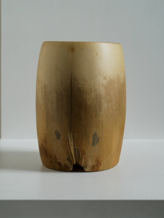 石黒幹朗 Ishiguro Mikio,1980 年生於日本兵庫縣,現居京都京丹波町。以鹿皮為核心素材,長年投入自然素材與手工藝的探索。作品形式橫跨皮革雕塑、裝置、燈具與空間構成,呈現素材原始狀態中的生命痕跡與時間感。
